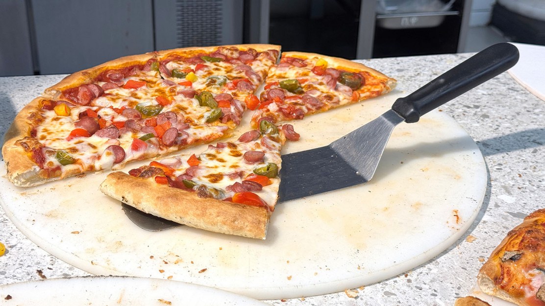 A pizza stone heats evenly for a crisp, brick‑oven‑style crust at home.