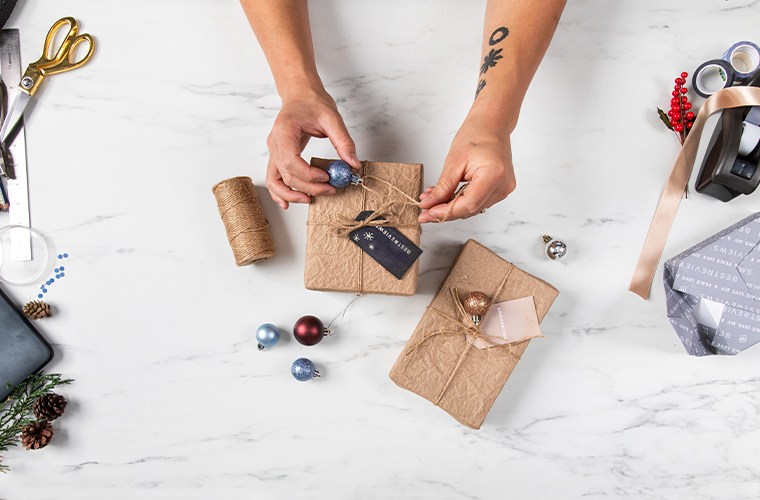 A. If you have several kinds of gift bags and packing materials, an organizer with multiple compartments may be best. These organizers make it easy to keep all of your gift-wrapping materials together. Alternatively, you can neatly place bags and tissues in your largest gift bag.