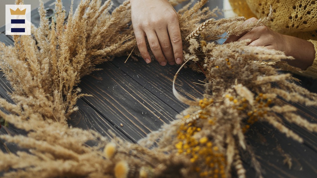 What you’ll love: This wreath has an assortment of artemisia, purple globe amaranth, green wheat, yarrow, flax, nigella, purple sinuata statice and orange safflower. The dried flowers are fit for any season and can be hung on doors, walls, chairs and mantels or as table rings.