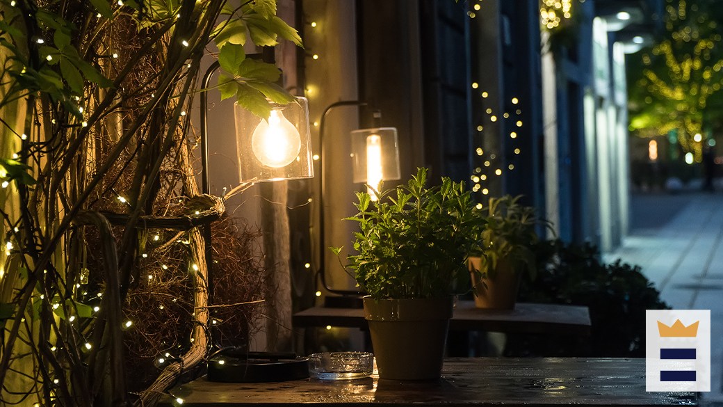 The color or stain of the outdoor lamp table should match the rest of the patio furniture it neighbors.