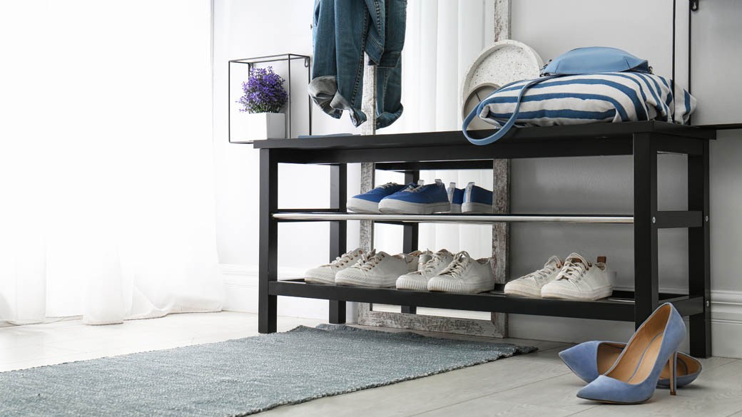 Taking your shoes off in a home is standard for many households, but having a concise, out-of-the-way place to put them seems to be less common. Cue the shoe rack: a wide range of shoe organizers that make it clear where shoes go, making them easy to find and, sometimes, adding a new aesthetic to your decor. Where you plan to put it and how many shoes you have will determine which shoe rack is best. This Micro Fabric Shoe Rack And Hallway Bench is a great space-saving solution.
