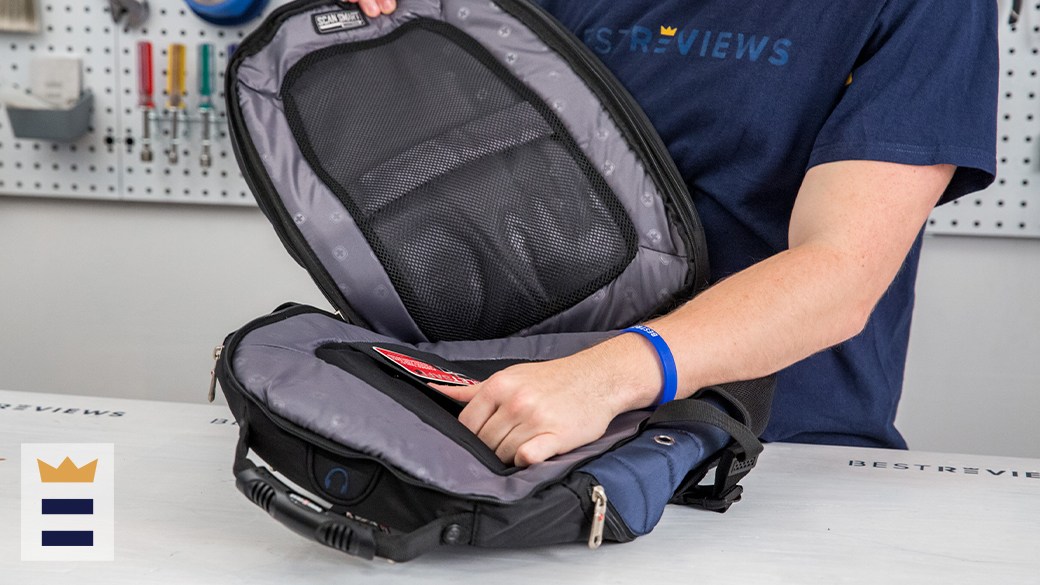 What you’ll love: It has three large pockets, a hidden security pocket and a water bottle holder. It also comes with a USB charging port and a headphone jack, and the polyester material is both water-resistant and scratch-resistant.