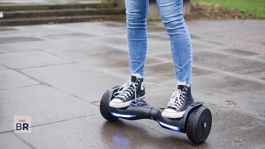 The Swagboard Warrior XL has a durable, waterproof body and handles exceptionally well in the rain. It even rides over puddles without slipping or skipping. We were also impressed that rain didn’t affect the Bluetooth speakers.