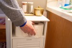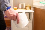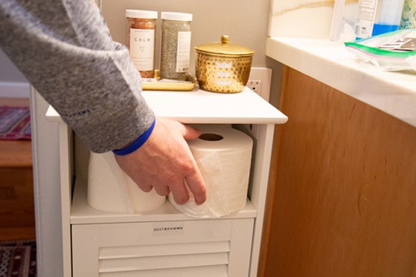 Users with pets or small children may want to use the “underhand” method of mounting toilet paper. This orientation makes it more difficult for a pet or child to spin out an entire roll.
